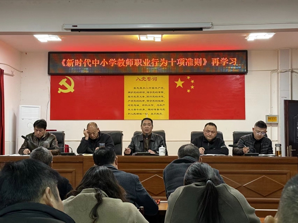 ~ 会上,校长张中保传达了定远县2024年师德师风建设警示教育大会的会议精神,同时带领全体教师认真学习《新时代中小学教师职业行为十项准则》和《违反教师职业行为十项准则典型案例》,会议要求所有教师要端正教学态度,廉洁自律,做新时代“四有”好老师。