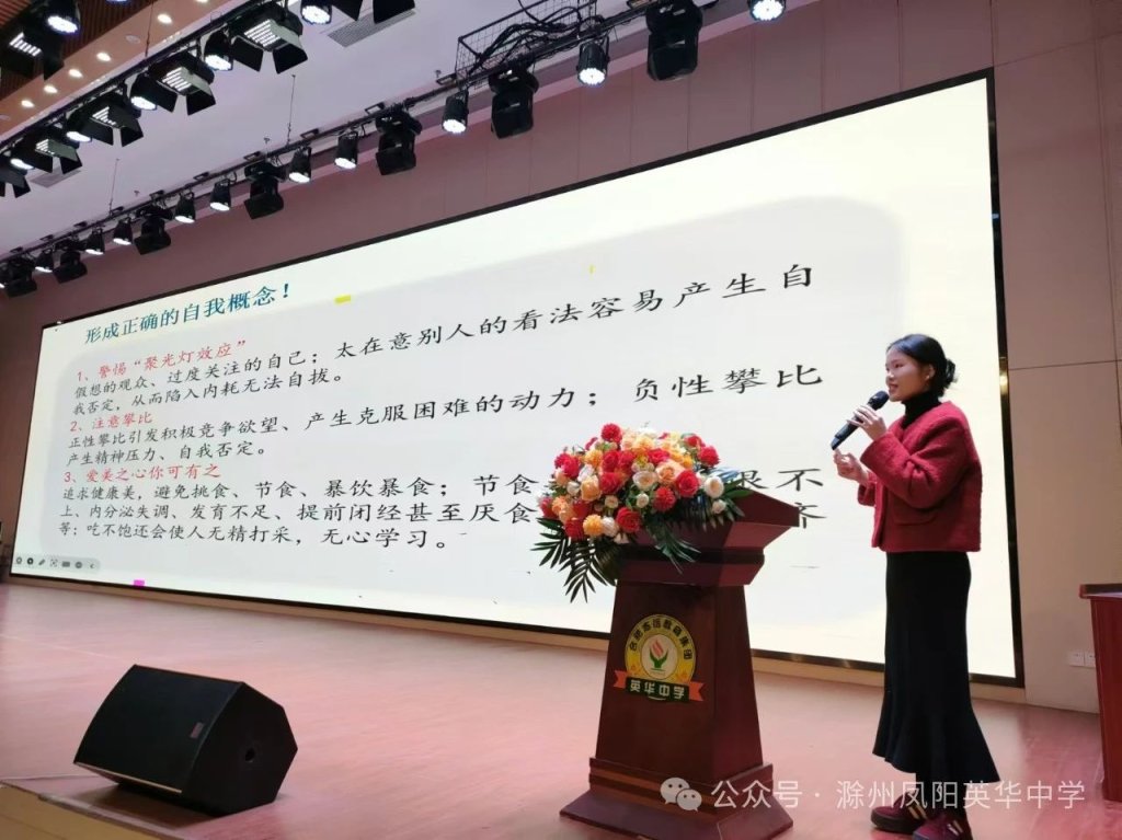 ~ 为了引导青春期学生正确面对身体和心理变化,了解青春期健康生理知识,正确面对变化和烦恼,树立健康向上的良好心态,帮助同学们正确认识青春期的生理和心理变化,11月19日晚,滁州凤阳英华中学八年级开展了以“拥抱青春的礼物”为主题的青春期女生心理健康讲座。本次讲座由八年级教学主任沈倩雯主任主持,心理健康教师王萍老师主讲。