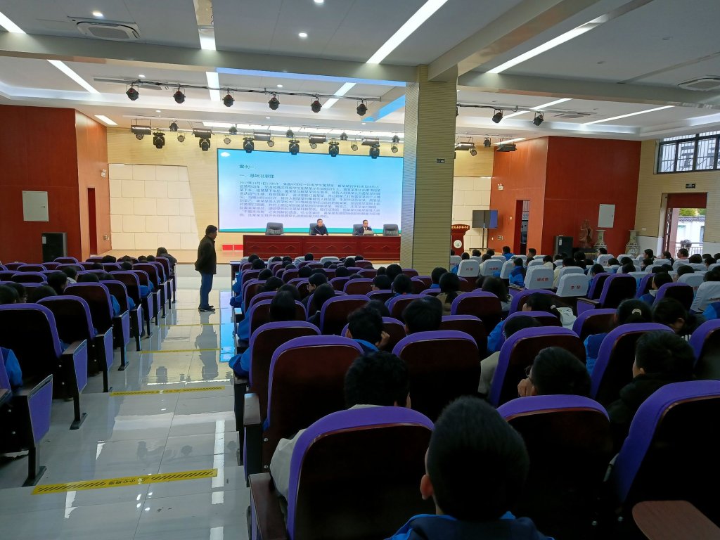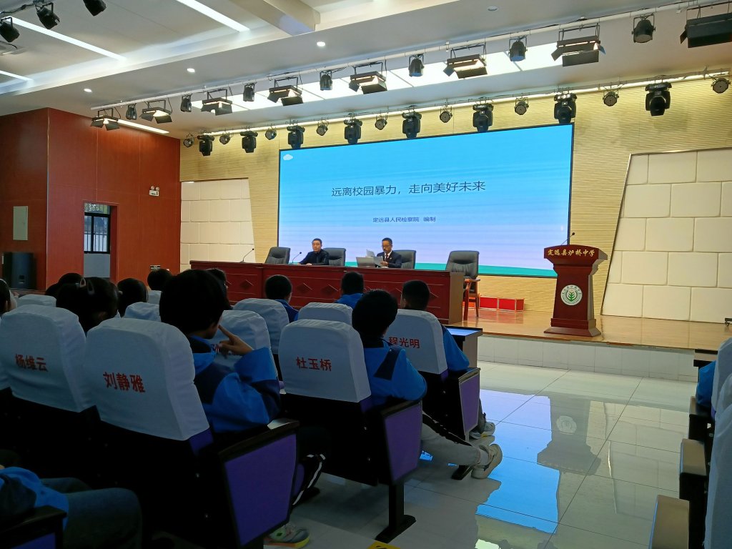 ~ 11 月 20 日下午,定远县炉桥中学八年级全体师生齐聚学校报告厅,一场以《预防校园欺凌》为主题的专题讲座在此举行。本次讲座由副校长刘光主持,特别邀请到定远县人民检察院赵瑞主任,专职法治副校长,作为主讲嘉宾。