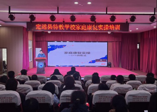 ~ 为进一步提升家长的家庭教育康复水平,让家长掌握科学的康复训练技能,真正实现家校携手,共同促进特殊儿童身心康复,11月19日下午,定远县特教学校在家长培训室对康复部全体家长进行了家庭康复训练实操培训。