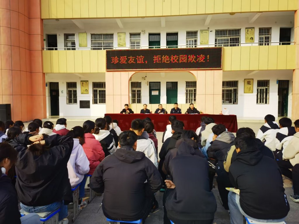 ~ 11月21日下午,定远县永康中学联合永康派出所开展防欺凌安全教育活动。活动在校楼前广场举行,全体师生参家。校党支部书记、校长董志友主持。