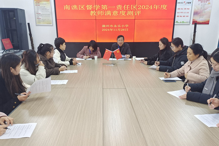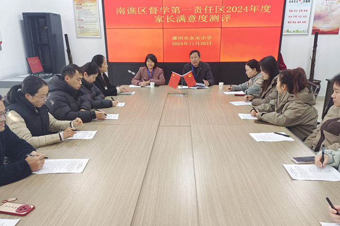 ~ 为严格落实“双减”政策,进一步推动南谯区第一督学责任区挂牌督导工作,广泛听取基层学校(幼儿园)意见,提高督导工作水平,更好地服务学校(幼儿园),11月26日,南谯区第一督学责任区一行来到滁州市永乐小学,在行政楼四楼会议室开展了该校2024年度满意度测评工作。