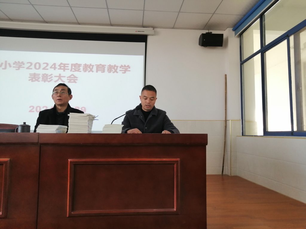 ~ 会上,李朝副书记对2023-2024学年度教育教学工作作了全面总结,对学校取得的成绩作了充分的肯定。教务主任王仁兵、少先大队辅导员李瑞分别宣布了获得表彰的师生名单。