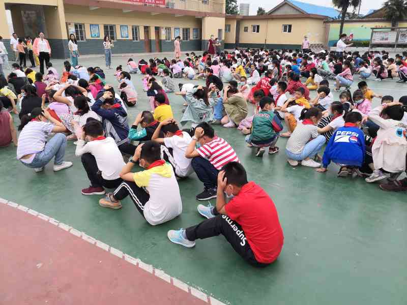随着一声急促的警报声响起,正在上课的同学们在老师的指导下立刻双手抱头蹲下,随着第二声警报响起,同学们抱头弓腰,沿着指定的应急通道,有序地、迅速地撤离到学校操场的安全地带集中。整个疏散过程井然有序,不到2分钟就全部集结完毕。