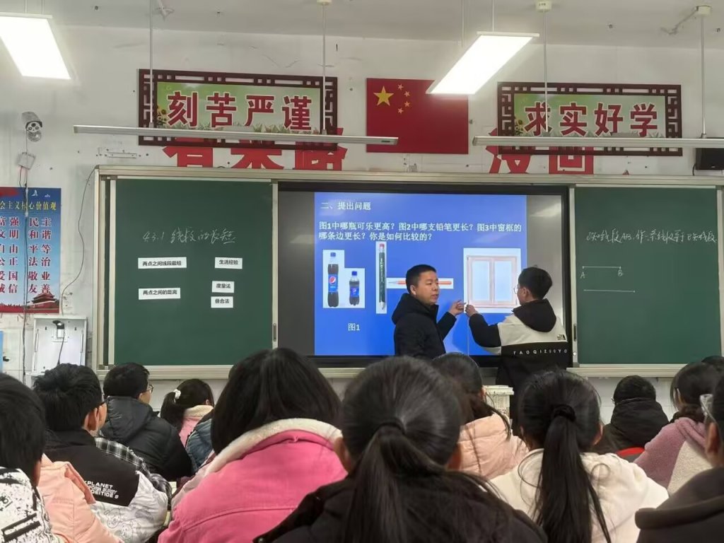 张德文主任主持教研活动此次教研活动,观摩了由工作室成员肖虎老师执教的沪科版新版教材课例——(七年级上《线段的长短》)。课上,肖老师教态亲切自然、教学重难点突出、教具准备充分,这是一堂精心设计的数学课。这堂课主要采取小组合作探究的方式,给与学生提供思考、交流探究的空间,引导学生动手操作、体验乐趣,感悟知识,整个教学思路与过程一气呵成。从这堂妙趣横生的课中,肖老师展示了自己的教学风采,发挥了独有的教学魅力,体现了教师教学的个性化。