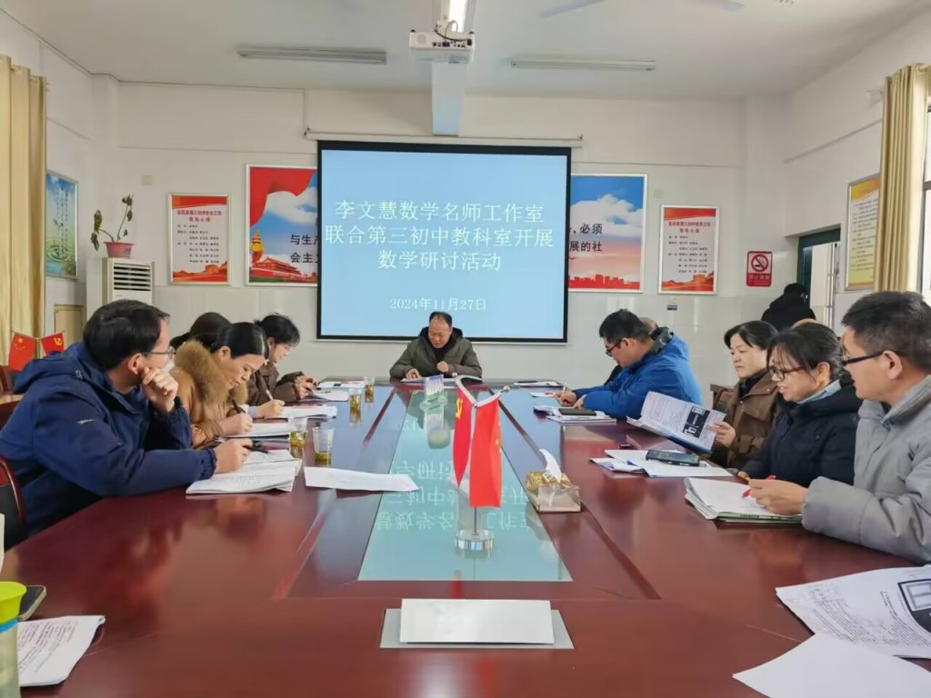 为促进优质教育资源共建共享,深化课堂教学改革,提高初中数学课程教学质量,进一步推动名师工作室创新发展,加强城乡教育教学交流与合作,2024年11月27日,定远县李文慧初中数学名师工作室与第三初中教科室联合研讨活动在定远县第三初中举行。