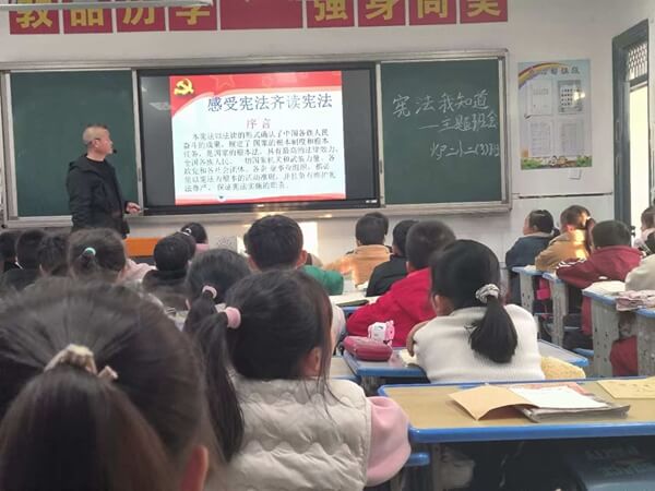 ~ 首先,五年级学生代表在国旗下发表了题为“大力弘扬宪法精神,建设社会主义法治文化”的讲话,其言辞激昂,感染力强,赢得了师生们的热烈掌声。其次,各班级也积极行动起来,召开了以学习宪法为主题的班会活动。在活动中,同学们通过观看宪法知识视频,参与宪法知识问答等形式,深入学习宪法知识,增强法治观念。