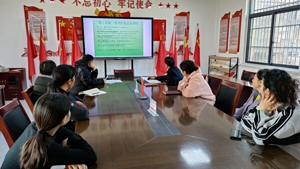 ~ 本次会议由校长李四军主持。他从学校食品安全问题概述、整改措施、各岗位职责等方面对食堂从业人员、管理人员、陪餐人员进行了培训,强化了食品安全链条。