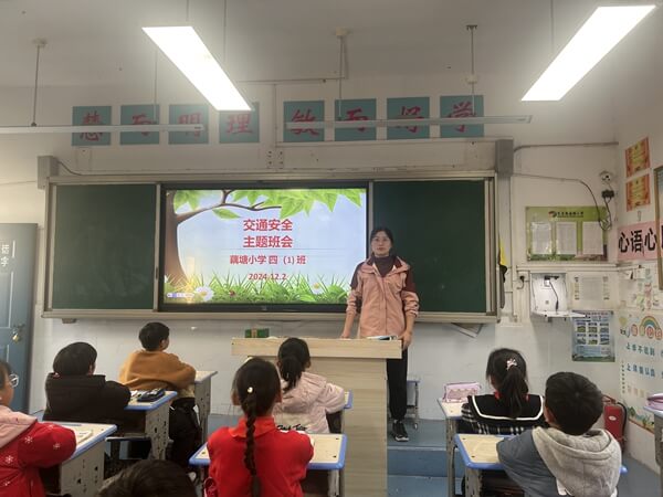~ 为了提高学生的交通安全意识,预防和减少交通事故的发生,12月2日,定远县藕塘小学组织各班级举行了一次以“交通安全伴我行”为主题的班会。此次活动旨在通过教育和互动,让学生们了解交通安全的重要性,并学会如何在日常生活中遵守交通规则,保障自身安全。