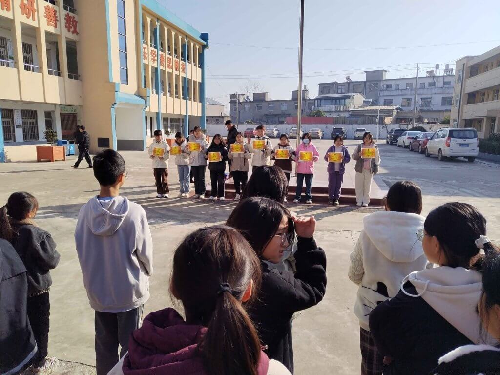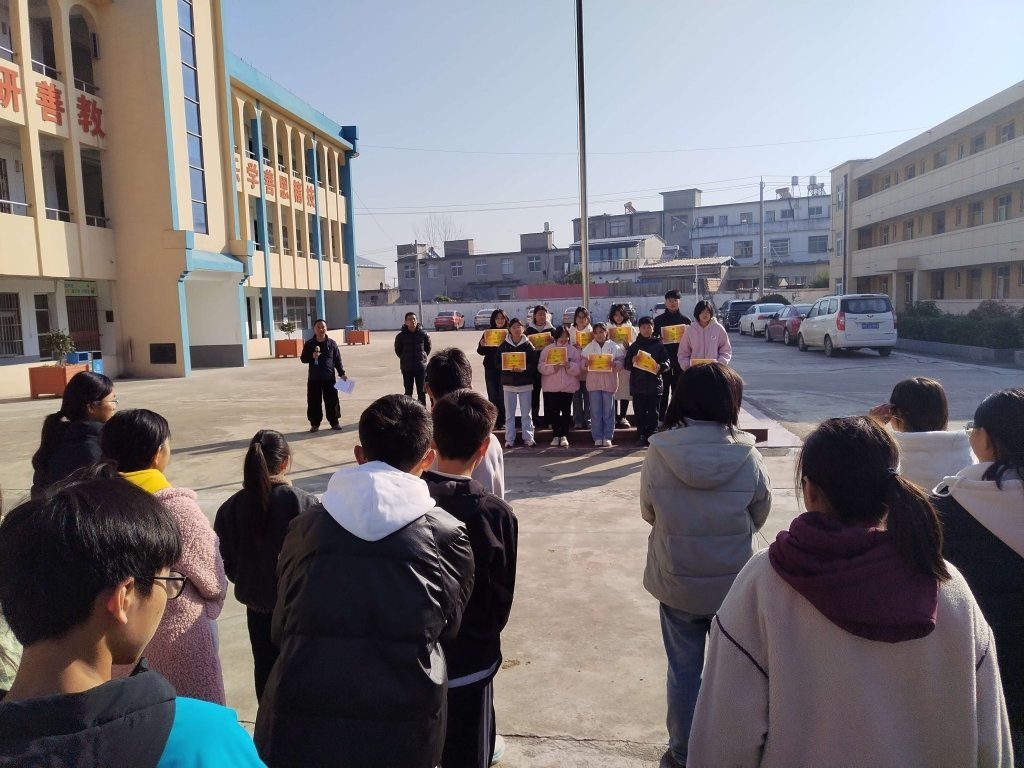 ~ 为了更好推进素质教育,强化五育并举,以表彰促学风,以榜样立标杆,强化校园学习氛围,12月2日,定远县年家岗初中利用周一升国旗时间在楼前广场开展阶段性评比表彰活动,集中表彰了“五育”取得突出成绩的学生。