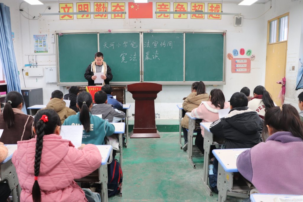 ~ 2024年12月4日,是第十一个国家宪法日。为维护宪法权威,学习宪法精神,定远县天河小学开展宪法晨读活动。