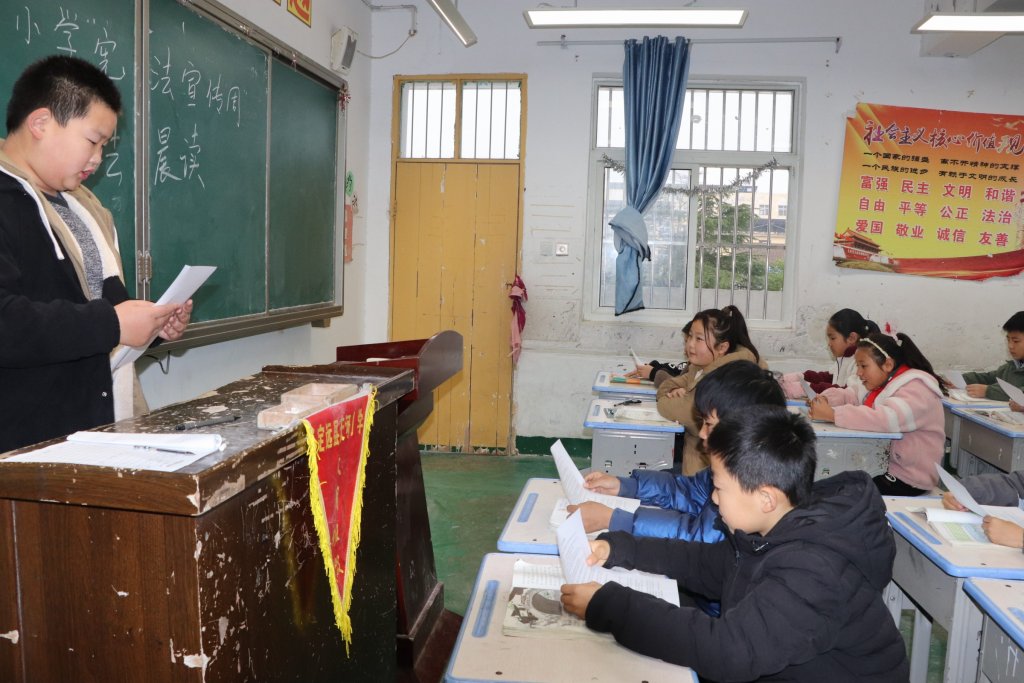 ~ 晨读期间,在老师引导,高年级的孩子们手捧宪法条文,进行了宪法晨读,并了解了国家宪法日的由来精神饱满地逐句诵读。