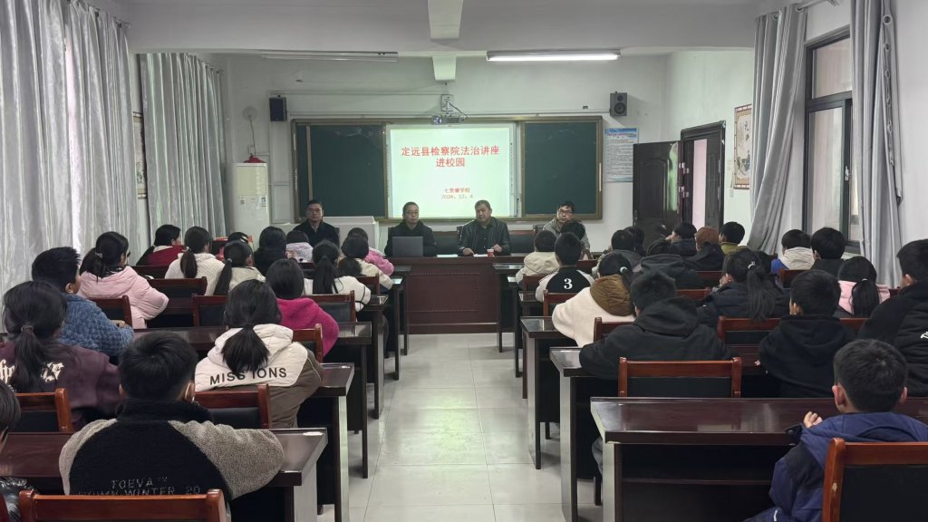 ~ 为进一步弘扬法治精神,深入开展法治宣传教育,扎实推进法治校园、平安校园建设,增强学生的法律意识,关爱学生健康成长,12月4日下午,定远县七里塘学校邀请了定远县检察院第一检察部主任、该校法治副校长赵瑞到学校开展法治进校园活动,为该校师生带来了一场主题为“远离校园暴力,走向美好未来”的法治讲座。