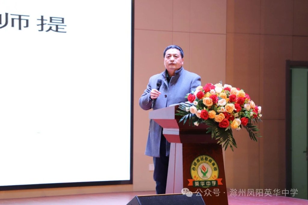 ~ 在教育的征程上,每一次的回顾与展望都是为了更好地前行。为提高全体教师的凝聚力,全面梳理过往工作,谋划未来发展蓝图,为学校教育教学工作注入新的动力与活力,12月3日晚,滁州凤阳英华中学召开高中部全体教师会议,副总校长徐大山主持会议。