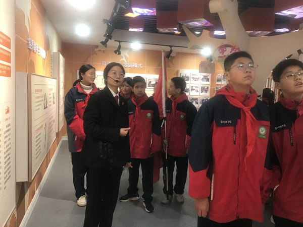 ~ 定远县人民法院民一庭法官助理蔺婕带领同学们参观了县法院法治教育基地,同学们仔细聆听了宣讲员的讲解,不时询问有关法律知识,对宪法、义务教育法、预防未成年犯罪等法律有了一定的了解,让同学们边逛边学,尽享“法治大餐”,感受宪法力量。同学们还观看了县人民法院根据一个少年犯罪的真实案例改编的原创拍摄剧目《一“线”惊心》,给同学们上了一堂生动的法治课。
