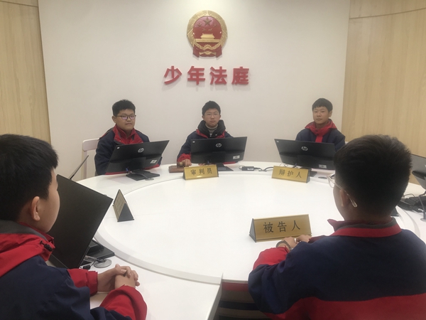 ~ 随着法槌的敲响,一起以校园欺凌为庭审素材的模拟法庭正式开庭,庭审过程气氛庄严、程序完整。通过身临其境的体验,激发了他们尊法学法守法用法的自觉性、主动性、积极性,引导广大学生从小遵纪守法。