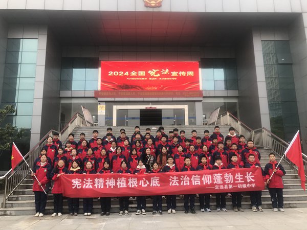 ~ 2024年12月1日至7日,是我国第七个“宪法宣传周”,主题为“大力弘扬宪法精神,推动进一步全面深化改革”。12月5日,定远县第一初级中学双塘中学校区联合县人民法院开展了“宪法宣传周”实践活动。