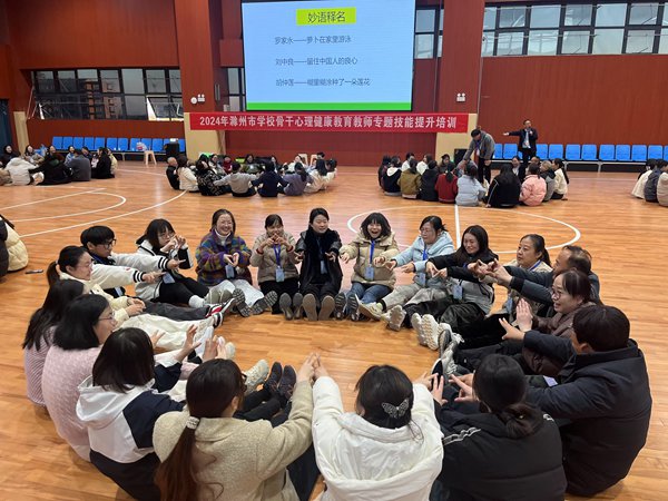 培训中,罗老师还细致讲解团体心理拓展活动的设计与组织背后的深层含义,鼓励大家互相讨论、积极提问,分享在培训中的心得体会。通过两天半的深入学习,两位教师表示,本次培训不仅提升了他们的专业素养和能力,掌握了心理拓展实操技巧,而且也为未来教学生涯中可能遇到的困惑,提供了解决新思路。
