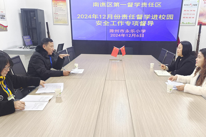 ~ 为进一步强化安全意识,筑牢安全防线,严格落实“双减”政策。12月6日,南谯区第一督学责任区深入滁州市永乐小学开展了12月份校园安全工作专项督导活动。该校党总支书记姚杰,副校长张莉莉予以热情接待并陪同督导。