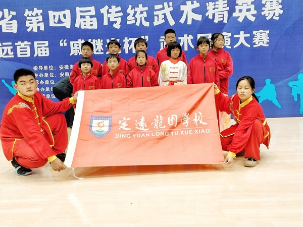 ~ 定远县龙图文武学校代表队的22名队员,由学校一至九年级不同班级学生组成,学校体育教师范翔担任教练。在近20天的备战中,范翔老师结合队员技术特点,制定科学训练计划,认真组织训练,使得队员们在赛场上充分发挥出了竞技能力,积极展现出了武术精神。