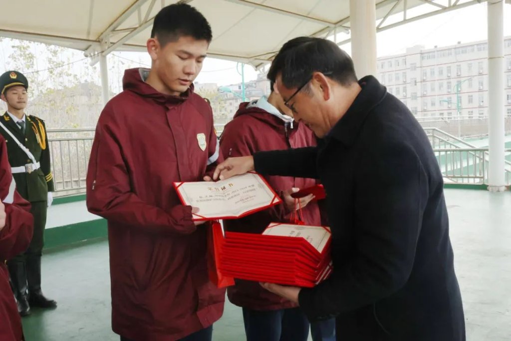 ~ 定远校区执行校长陈德义和党支部书记张雪丽为第二届国旗护卫队颁发证书和奖品。