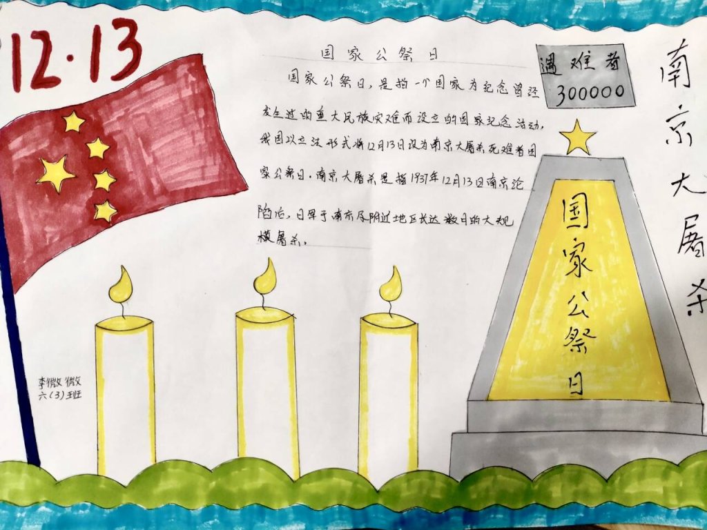 ~ 除此之外,同学们还积极动手创作手抄报,他们用自己的画笔勾勒出心中对历史的铭记、对和平的向往。手抄报色彩丰富、内容详实,书写着国家公祭日的由来,凝聚着孩子们真挚的情感和对历史的敬畏之心。
