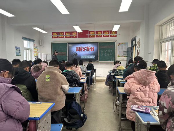 ~ 2024年12月13日,学校分年级召开了“牢记历史,勿忘国耻”主题班会。各班级首先对南京死难者同胞表示默哀,接着教师教育学生要牢记历史,勿忘国耻,珍爱和平,努力学习,为实现中华民族的伟大复兴而努力奋斗。(图文:郭平 审核:夏明松 审签:史正喜)