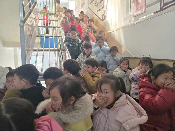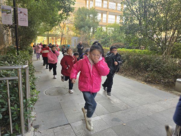~ 为确保这次演练取得实效,学校制定了《消防疏散演练方案》,对演练流程、班级疏散顺序、楼层值班教师等进行详细部署,明确职责和要求。方案的制定和实施,使师生们对消防安全有了更深入的了解,提高了大家在紧急情况下的自救能力,为校园安全提供了有力保障。 下午3时45分,随着一阵急促的消防警报铃声响起,演练正式开始,各班学生在老师的指挥下都用衣服或手捂住鼻子和嘴巴,弯着腰,顺着楼梯,扶着墙壁,迅速有序地向操场疏散。各楼层负责指挥人员立即指挥学生按照既定方案和路线撤离教学楼。从拉响警报到集合汇报人数完毕,整个疏散、撤离过程仅仅用了3分44秒,充分展示了师生们的应急能力,达到了演练的预期效果。