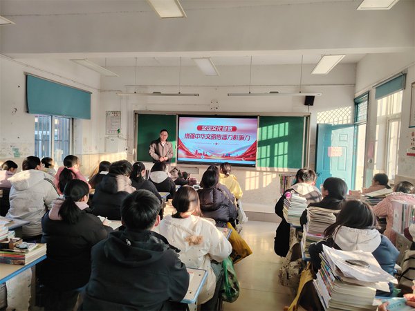 ~ 下午班会课上,各班纷纷以坚定文化自信为主题对学生进行中华优秀传统文化教育,引导学生树立正确的价值观,认同和传承中华传统节日,学习和欣赏中华传统文学艺术,弘扬和践行中华传统美德,坚守中华文化立场,做自信的中国人。(图文 盛少堂;审核 钱维红;终审 蒋安奎)