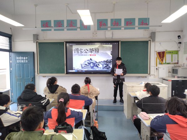 ~ 2024年12月13日,第十一个国家公祭日当天,定远县藕塘小学举办了以“铭记历史,缅怀先烈,珍视和平,警示未来”为主题的教育活动,旨在培养学生的历史意识和爱国情感。
