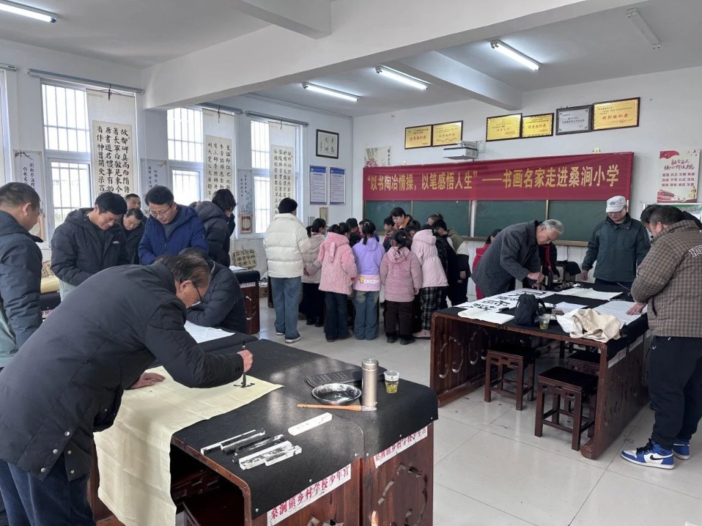 ~ 12月19日上午,一场充满文化气息的活动在定远县桑涧小学热烈展开,明光市知名书法家马文璋、徐方虎、胡士龙、胡正良,凤阳知名书法家罗传厚、王兴留,定远知名书画家杨永会、沈辰等书画名家齐聚于此,为校园带来了浓郁的墨香与艺术氛围。
