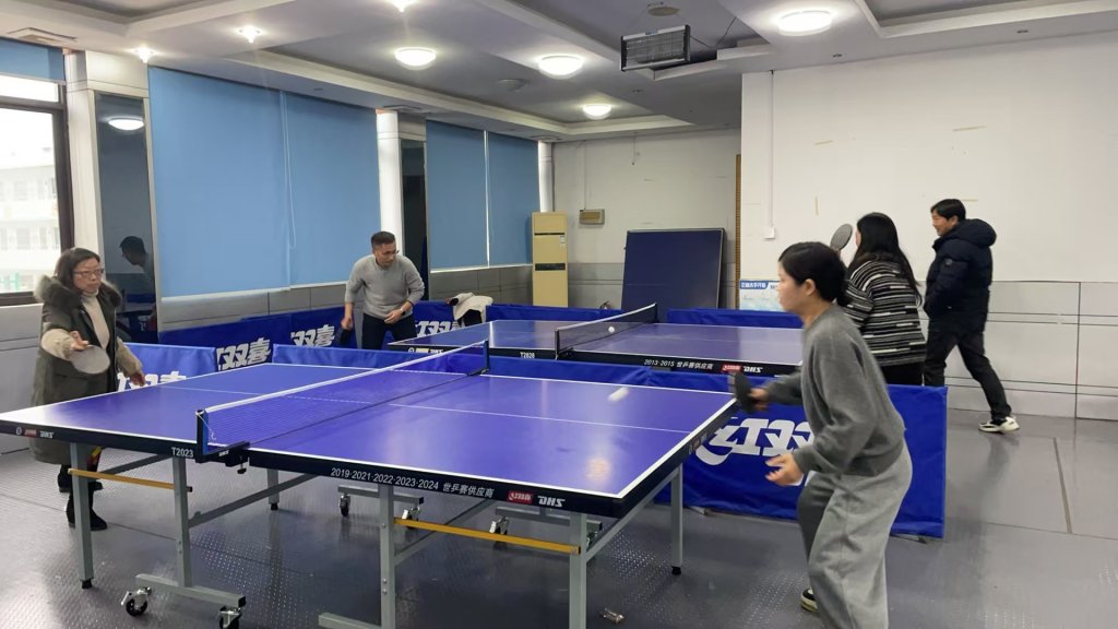 ~ 瞧,乒乓球比赛的现场,那小小的银球似跳跃的音符,在球桌两端轻快地穿梭。老师们挥动球拍的瞬间,宛如灵动的舞者在指挥着一场节奏明快的乐章,“乒乒乓乓”的声响,是这场乐章里最清脆悦耳的节拍,每一次击球都饱含着专注与热情,仿佛在诉说着对生活积极进取的态度。