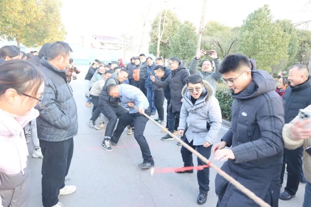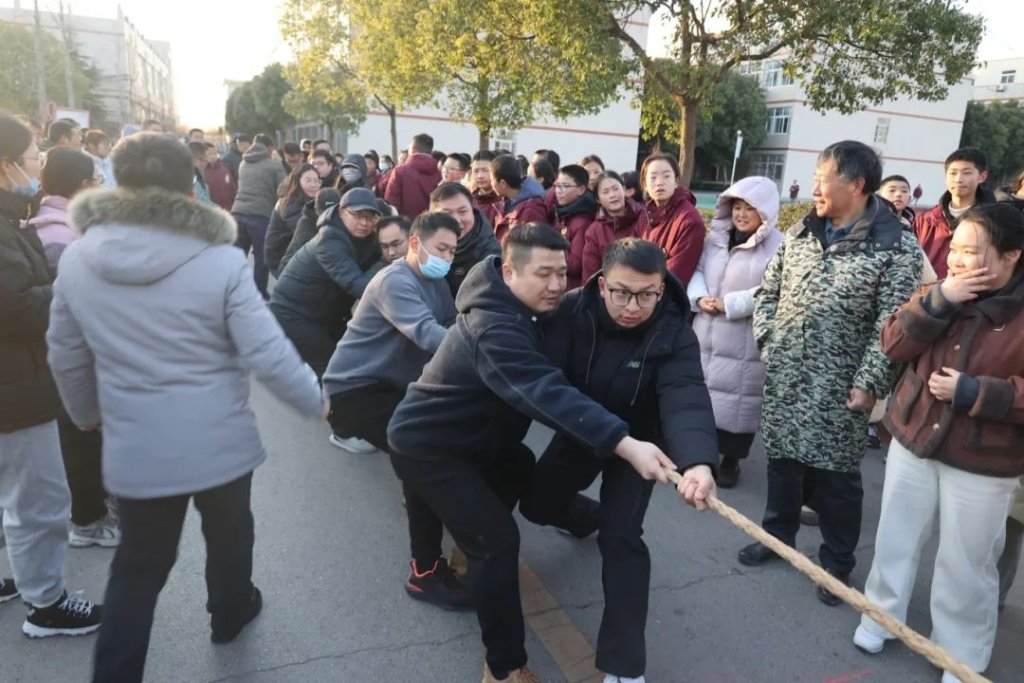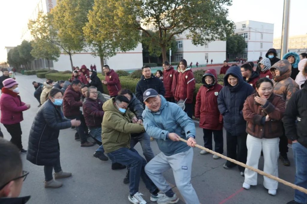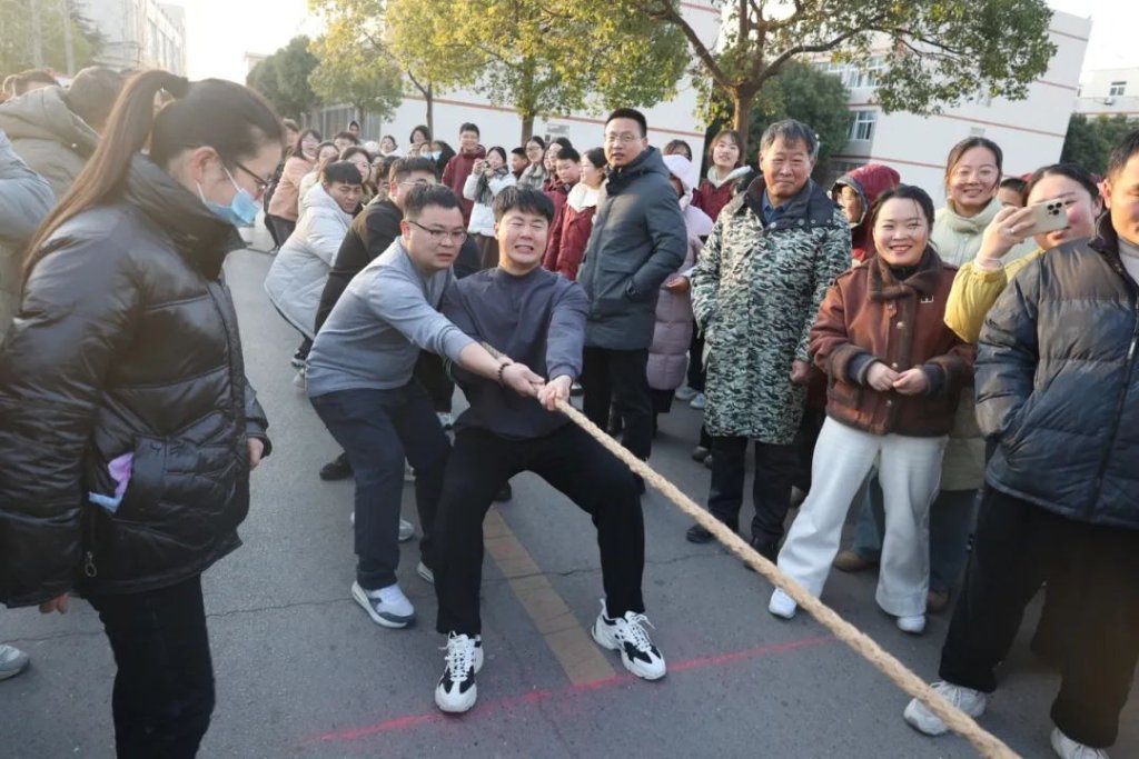 ~ 12月21日下午16:00,滁州市定远英华中学教职工拔河比赛正式开赛,此次拔河比赛项目分六大级部和后勤组七支队伍,采用抽签分组淘汰制。随着裁判一声清脆的哨响,拔河比赛正式开始。象征胜利的红丝带在两队之间来回移动,胜负难分,比赛紧张激烈,扣人心弦。场边啦啦队的加油呐喊此起彼伏,为选手们注入了无限动力,整个赛场洋溢着拼搏与团结的激情。