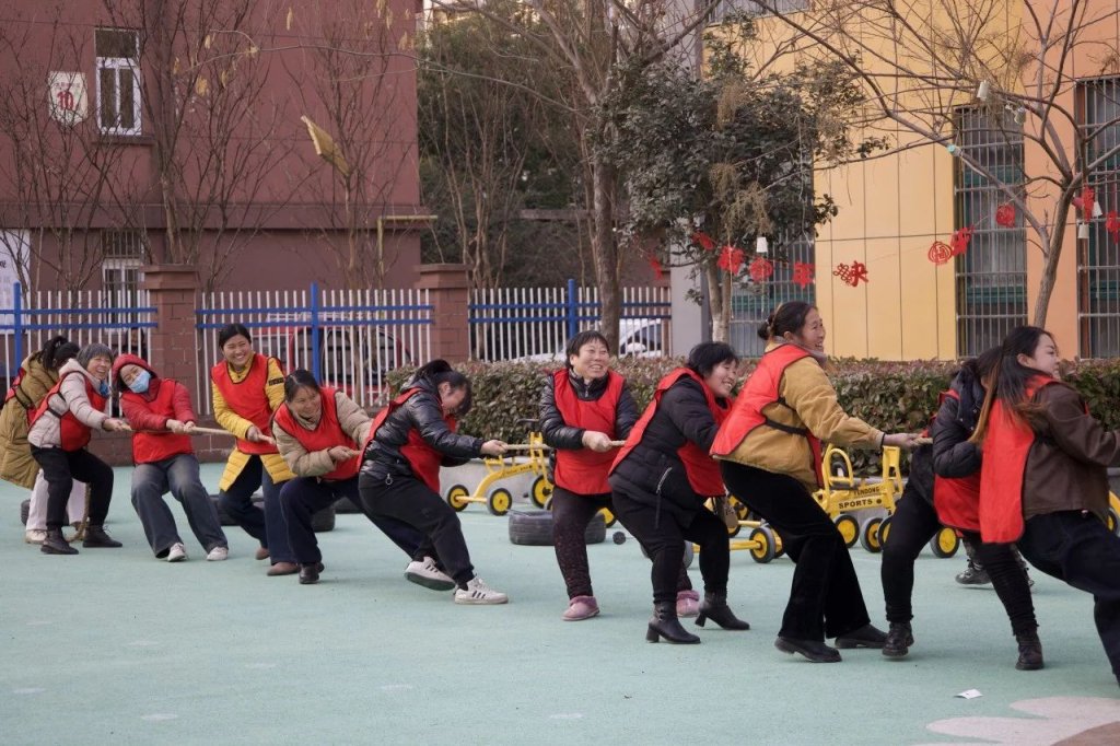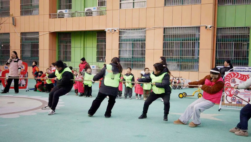 ~ 在众多项目中,灵蛇争霸赛成为了全场瞩目的焦点。这是一场力量与策略的较量,他们齐声高喊口号,步调一致地拉动绳子,体验着力量的比拼。两边的啦啦队也不甘示弱,加油声、呐喊声此起彼伏,响彻整个幼儿园。