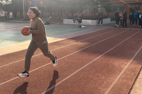 率先出发的老师们如同离弦之箭,向着终点飞奔而去。他们目光坚定,步伐稳健,稳稳地抱住篮球,仿佛那是珍贵的奖杯。比赛逐渐进入白热化阶段,各参赛队伍之间的竞争愈发激烈。老师们相互鼓励、默契配合,交接球的瞬间流畅自然,展现出了高度的团队协作精神。场边的啦啦队也毫不逊色,学生们挥舞着手中的彩旗,高喊着“加油!加油!”,声浪此起彼伏,为老师们加油助威。