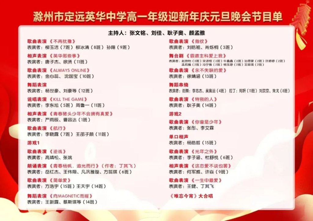 青春正是扬帆时 奋楫逐浪向未来——滁州市定远英华中学高一年级举办2025年迎新年庆元旦联欢晚会