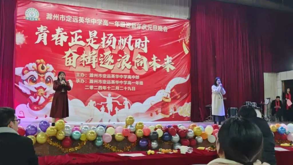 ~ 祥龙回首辞旧岁,金蛇起舞迎新年。为庆祝元旦佳节,展现英华莘莘学子风采,滁州市定远英华中学高一年级于2024年12月29日在学校大礼堂举办“青春正是扬帆时,奋楫逐浪向未来”2025年迎新年庆元旦联欢晚会。