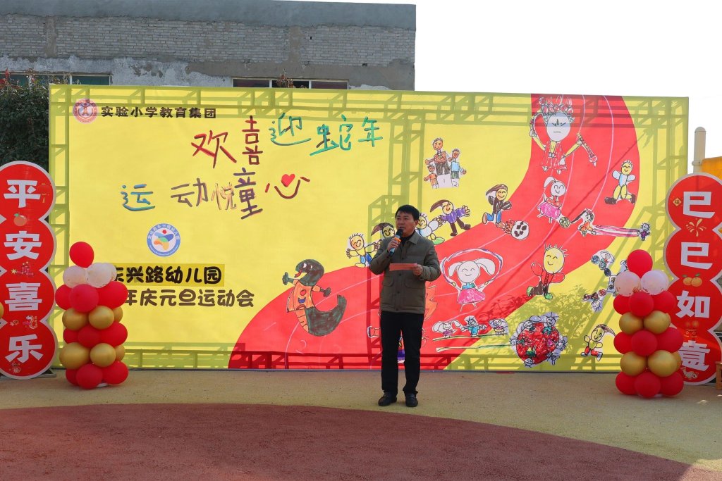 ~ 活动伊始,大朋友和小朋友们携手同行,踏着矫健的步伐,喊着响亮的口号来到了操场,实验小学教育集团党总支副书记、校长武文松和东兴路幼儿园园长朱琳分别进行了开场贺词,为孩子们送上了最真挚的祝福。