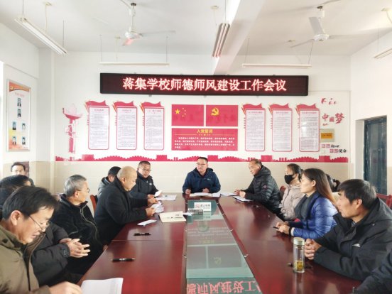 ~ 为进一步加强教师队伍建设,提升教师职业道德水平,定远县蒋集学校于1月2日召开了师德师风建设工作会议。会议由校党支部书记、校长熊文君主持,全体教职工参加了会议。