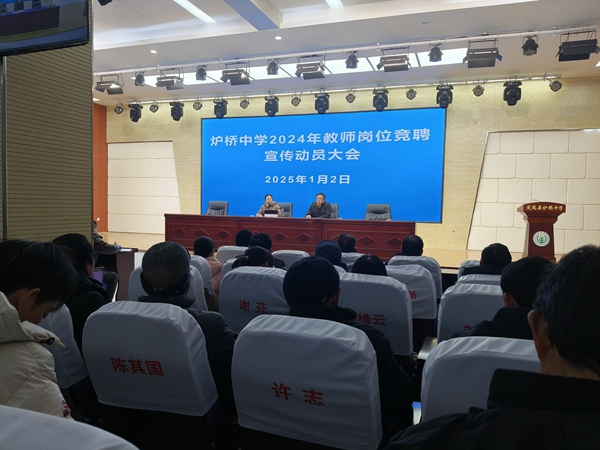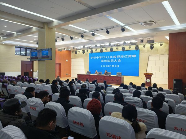 ~ 1月2日下午,定远县炉桥中学在学校报告厅召开2024年师德师风建设暨教师岗位竞聘宣传动员大会,会议由学校党委书记柏传文主持,全体教职工参加。