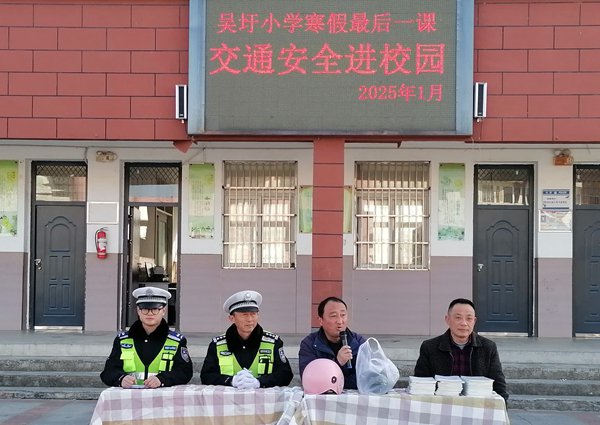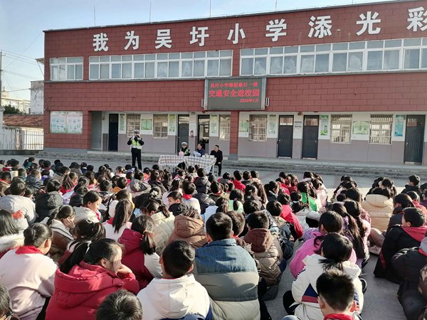~ 1月7日,定远县吴圩小学迎来了一场别开生面的活动——交通安全进校园。为了增强同学们的交通安全意识,提高自我保护能力,定远县交警大队杨警官和董警官走进校园,为同学们上了一堂生动有趣的交通安全课。
