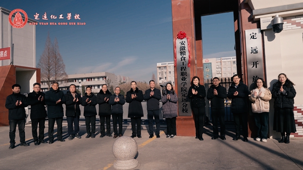 2025年1月8日上午,安徽粮食工程职业学院定远分校签约暨揭牌仪式在定远化工学校举行。安徽粮食工程职业学院党委委员、副院长刘向群及相关部门领导,定远县人民政府副县长许倩,定远县教体工委书记、教体局局长张传志,定远化工学校领导班子成员出席揭牌仪式。