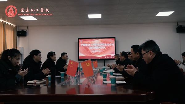 本次签约暨揭牌是定远化工学校贯彻落实“提升学校办学层次·服务经济社会发展”办学方向、推动产教融合的又一重要举措。作为首个高职学院在定远开设的分校,首批将开设食品检验检测技术、粮食工程技术与管理2个专业。