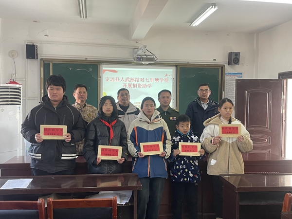 定远县人武部政委刘星一行赴七里塘学校开展捐资助学活动