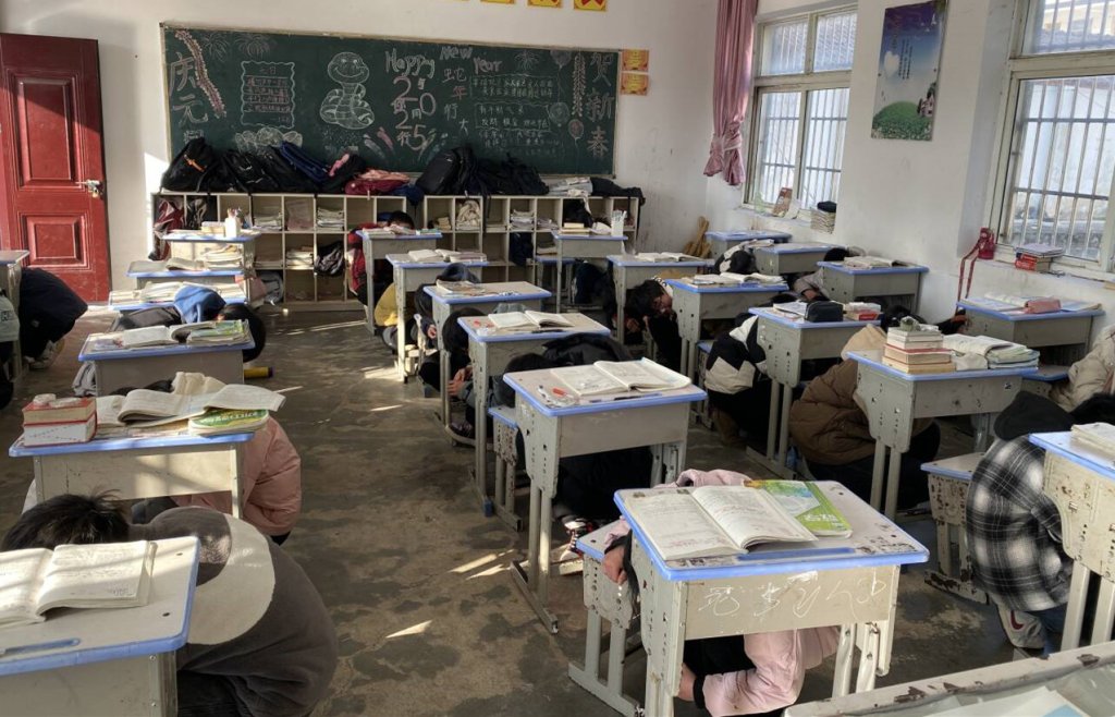 ~ 为了让这次疏散演练有序进行,学校安全办做了周密部署。随着警报声的响起,应急演练正式开始。面对未知的突发情况,师生迅速躲到课桌下的安全地带。 随后,全体师生按照预设路线迅速撤离到操场。整个过程有条不紊,负责人各司其职、坚守岗位,确保了全体师生快速、安全地疏散。抵达安全区域后,各班逐一清点学生的人数。