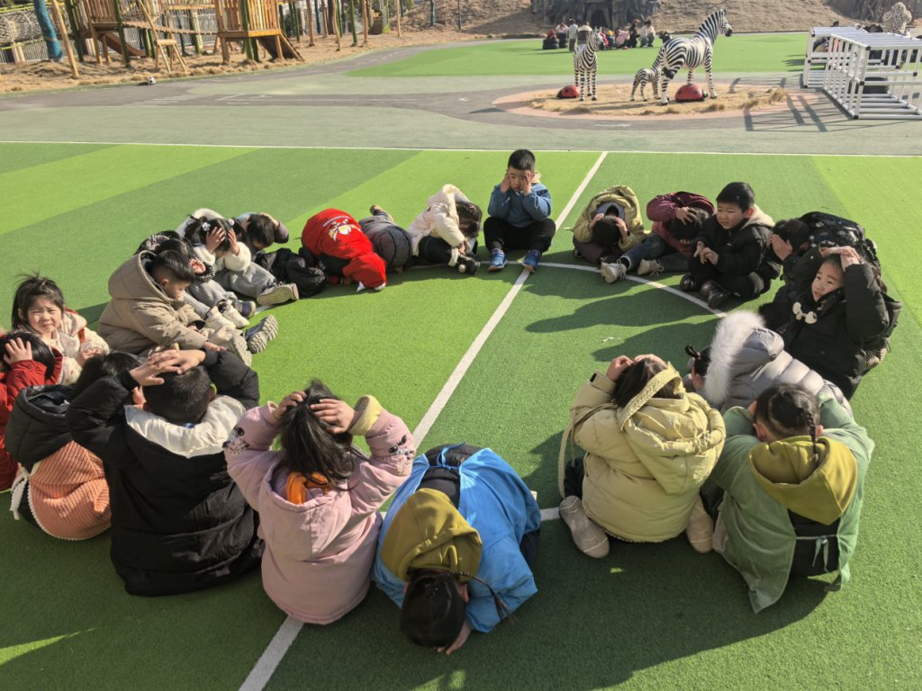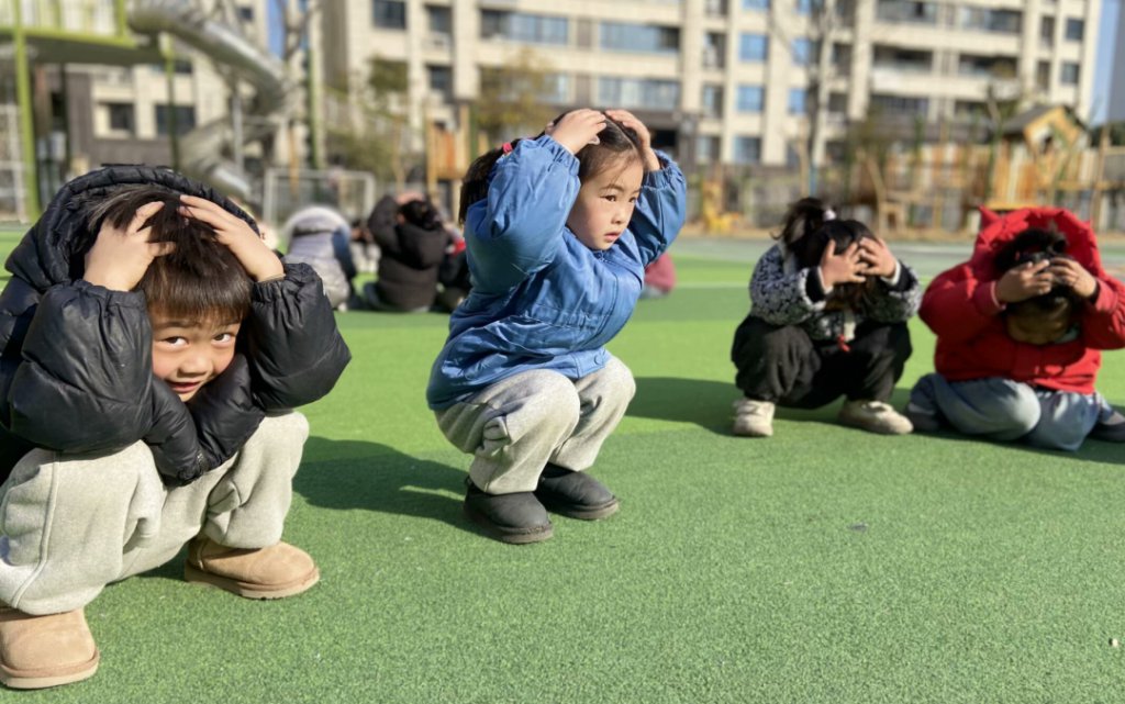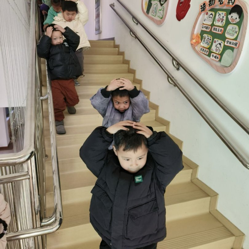 ~ 随着警报声的响起,防震演练正式启动。老师们立即组织幼儿双手护头,弯腰低身,按照预定的疏散路线迅速有序地撤离到户外空旷的安全地带。到达安全区域后,各班老师清点人数,确保全园师生安全撤离。