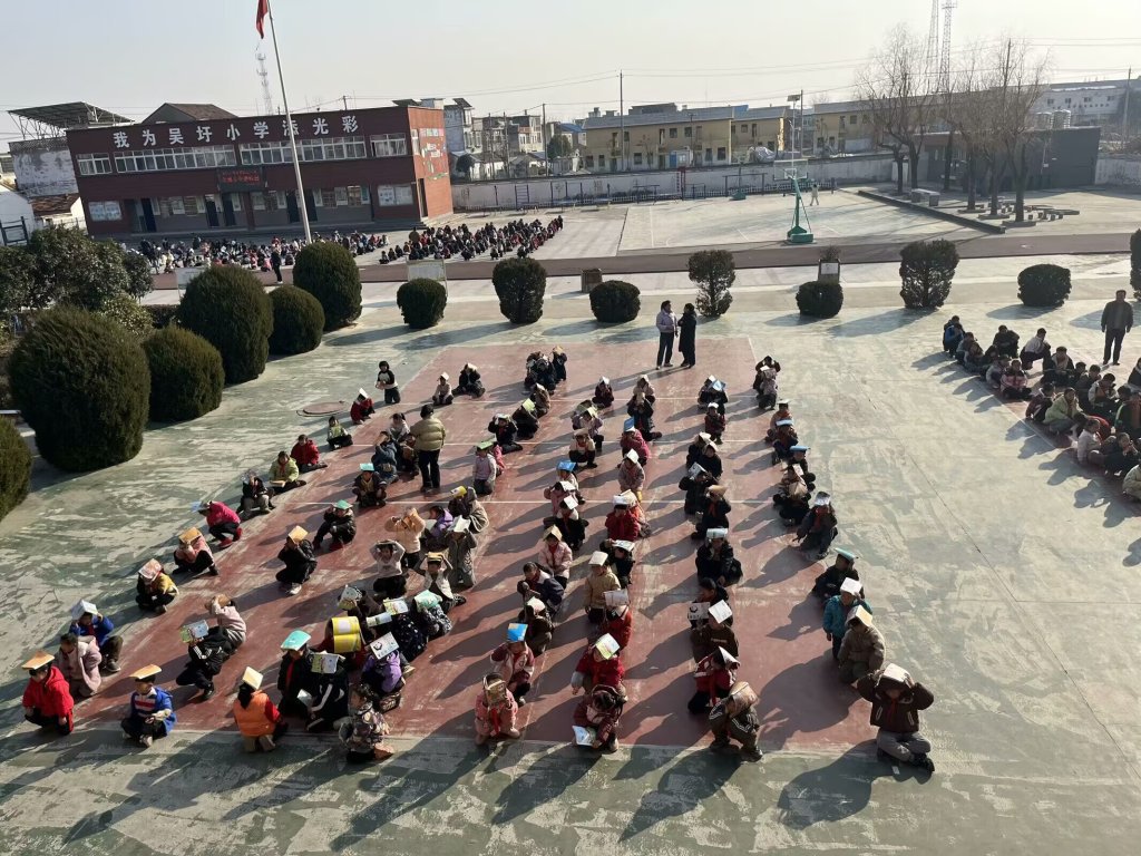 ~ 为了增强全体师生的防震安全意识,提高师生在地震来临时的应急逃生能力,定远县吴圩小学于1月13日举行了一场紧张而有序的防震应急逃生演练。