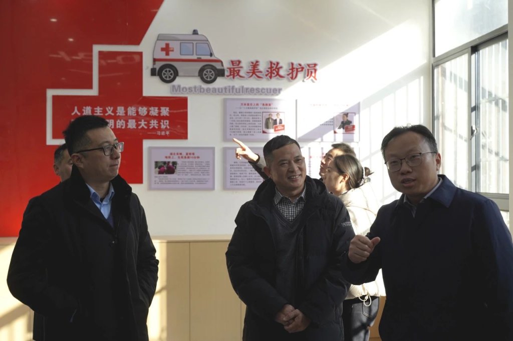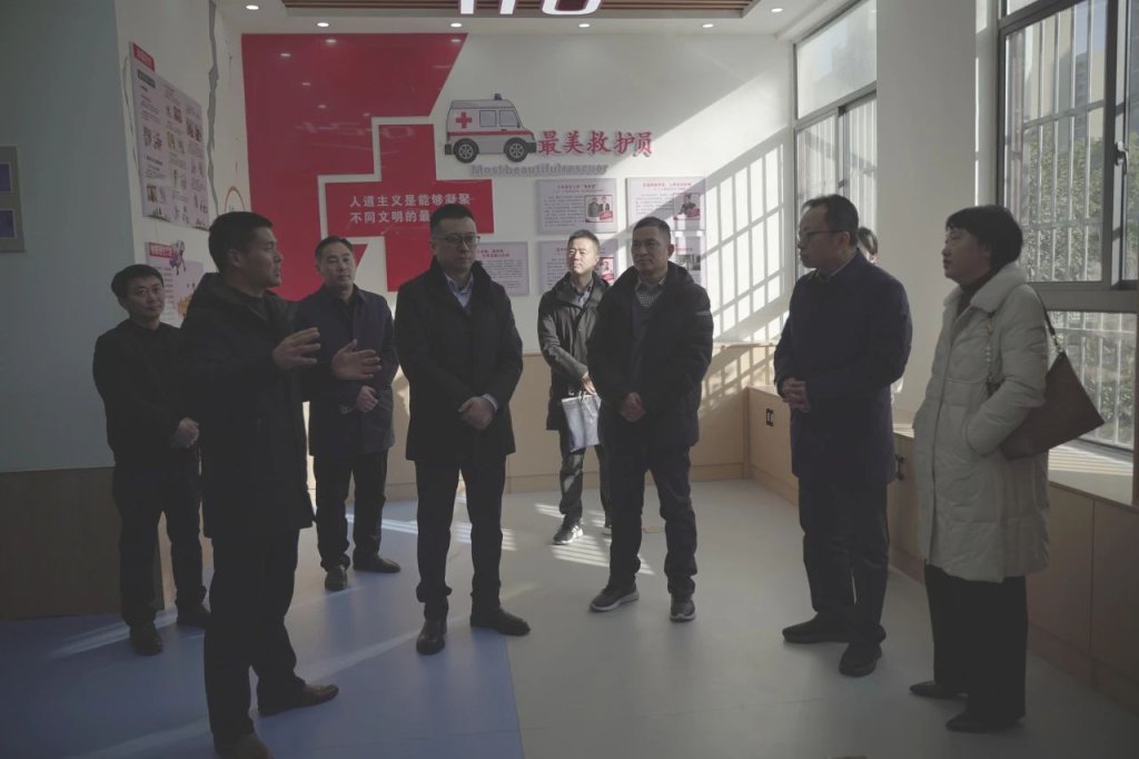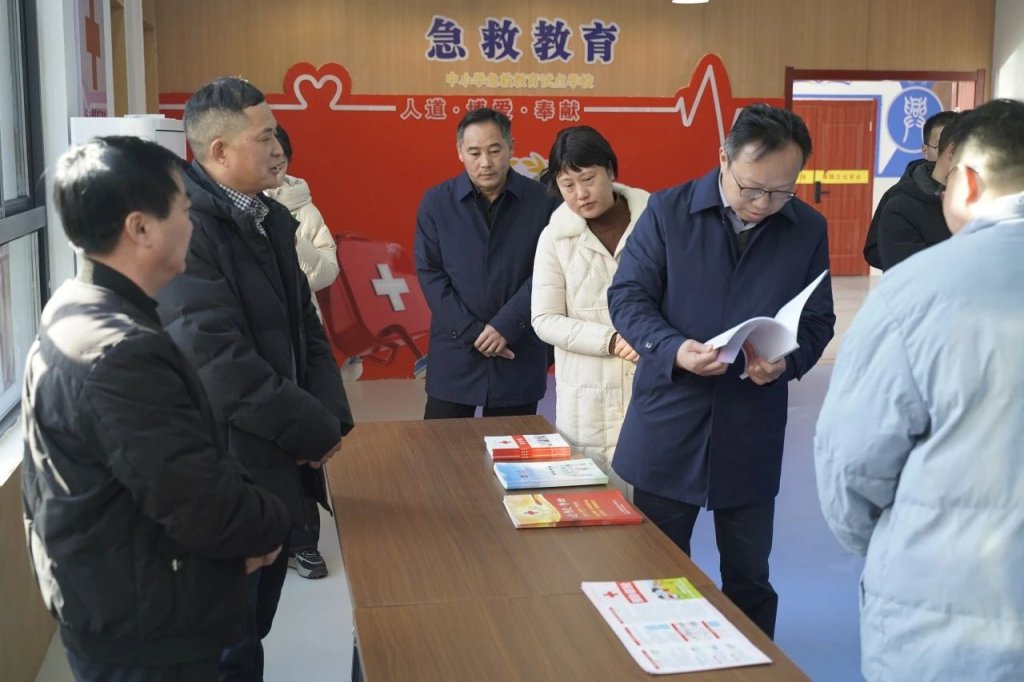 ~ 1月16日,安徽省红十字会党组成员、秘书长、二级巡视员曹芦松,省红十字会办公室一级主任科员赵丽琦,省红十字会办公室一级主任科员李文武,市红十字会党组成员、副会长(主持行政工作)、三级调研员纪妍,市红十字会综合科副科长王永达一行来定远县实验小学教育集团东兴路校区,针对学校应急救援管理室开展情况进行专题调研。定远县县政府副县长曹文昕,县红十字会常务副会长谢超,县教体局党工委副书记黄如勇,校党总支书记陈恩源,党总支副书记、校长武文松,校区负责人鲁宗环等全程陪同。