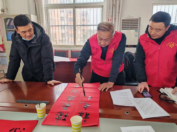 ~ 此次活动,不仅为校园和社区增添了喜庆祥和的节日气氛,也让参与者在一笔一划中领略到了书法艺术的博大精深,让大家感受到了中华传统文化的独特魅力。今后,学校将继续开展丰富多彩的文化活动和志愿服务活动,传递爱心与温暖,弘扬时代文明新风尚。(图文:程光明 李云 初审:俞泽柱 审核:刘光 审签:柏传文)