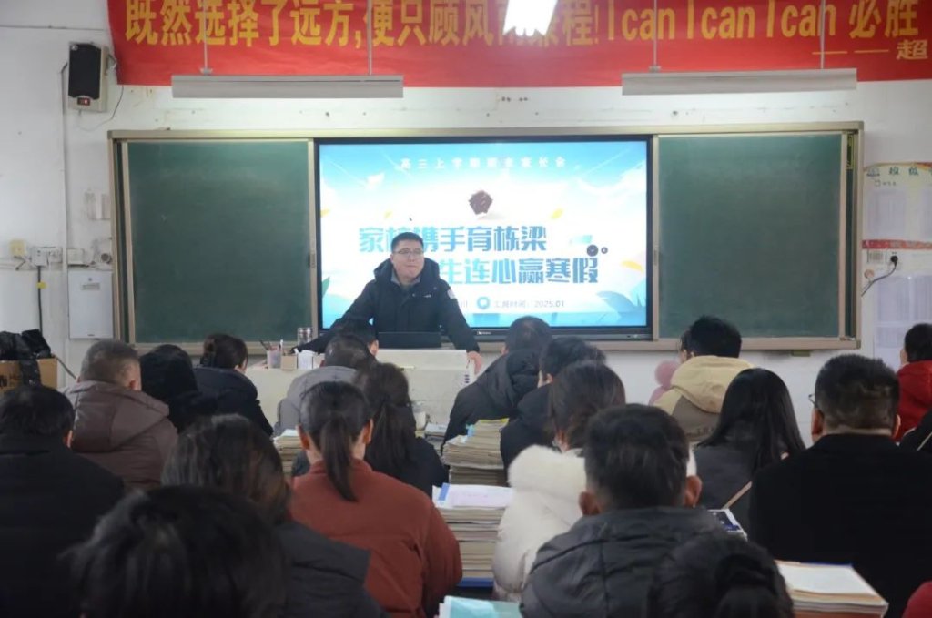 ~ 龙年挥手别,蛇年轻盈来。为了形成家校合力,帮助孩子顺利度过冲刺复习阶段,加快孩子前进的步伐,2025年元月24日下午,滁州市定远英华中学召开高三年级学生家长大会。会议由高三年级德育主任魏胜锋主持,副总校长兼高三年级主任携高三年级级部领导和全体班主任参加会议。